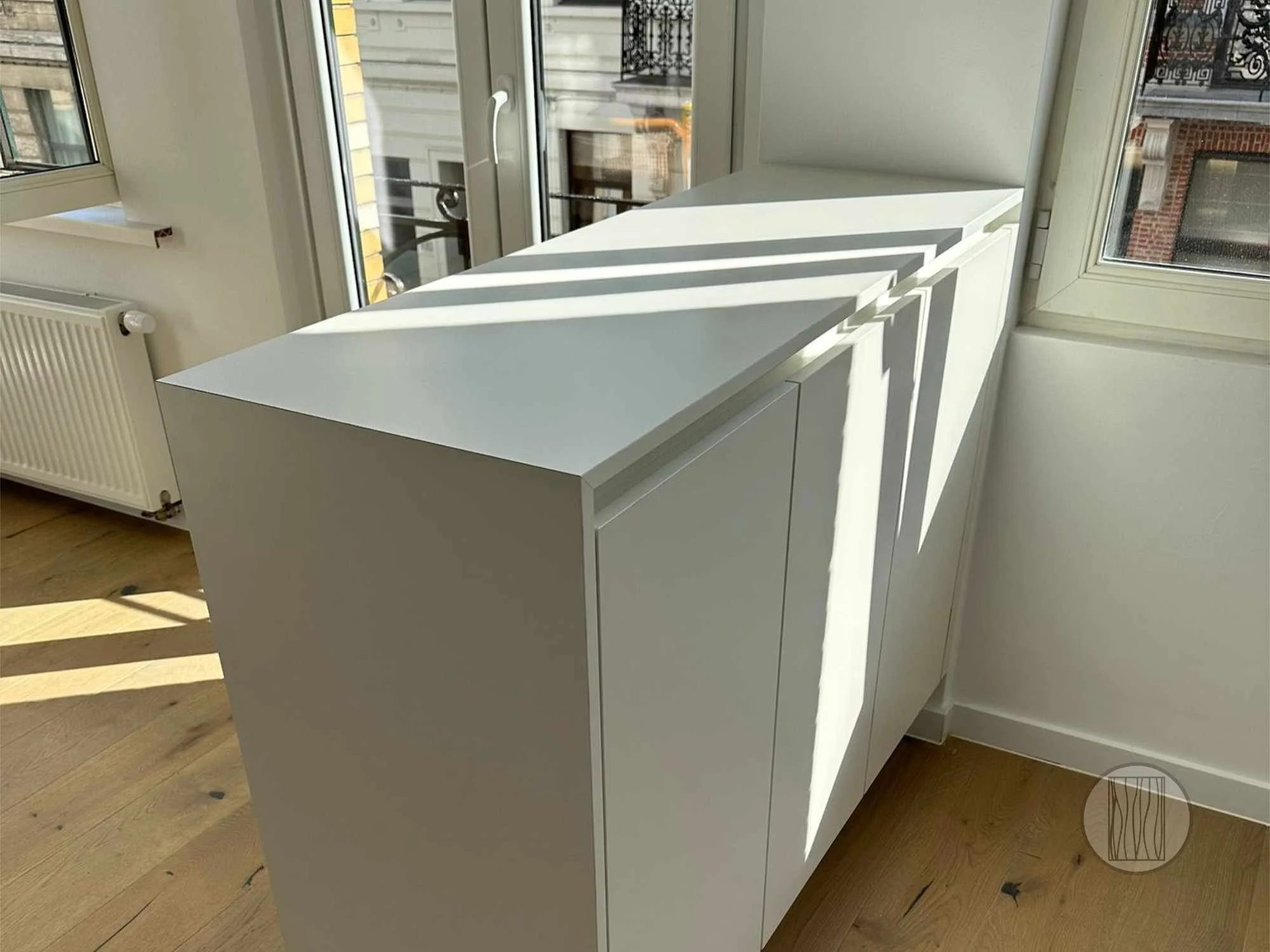 Projecten Volledige grootte weergeven TV meubels Volledige grootte weergeven Bureaus Dressings Kasten op maat Buitenschrijnwerk Binnendeuren Parket Badkamers
